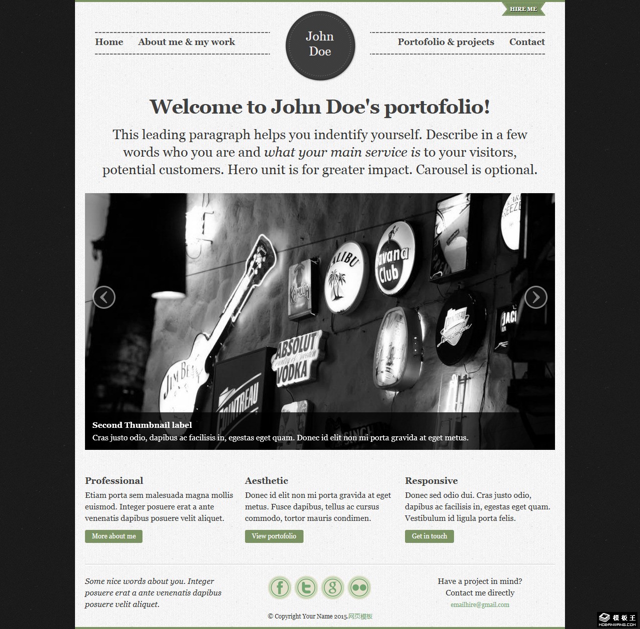 黑白复古个人展示网页模板。