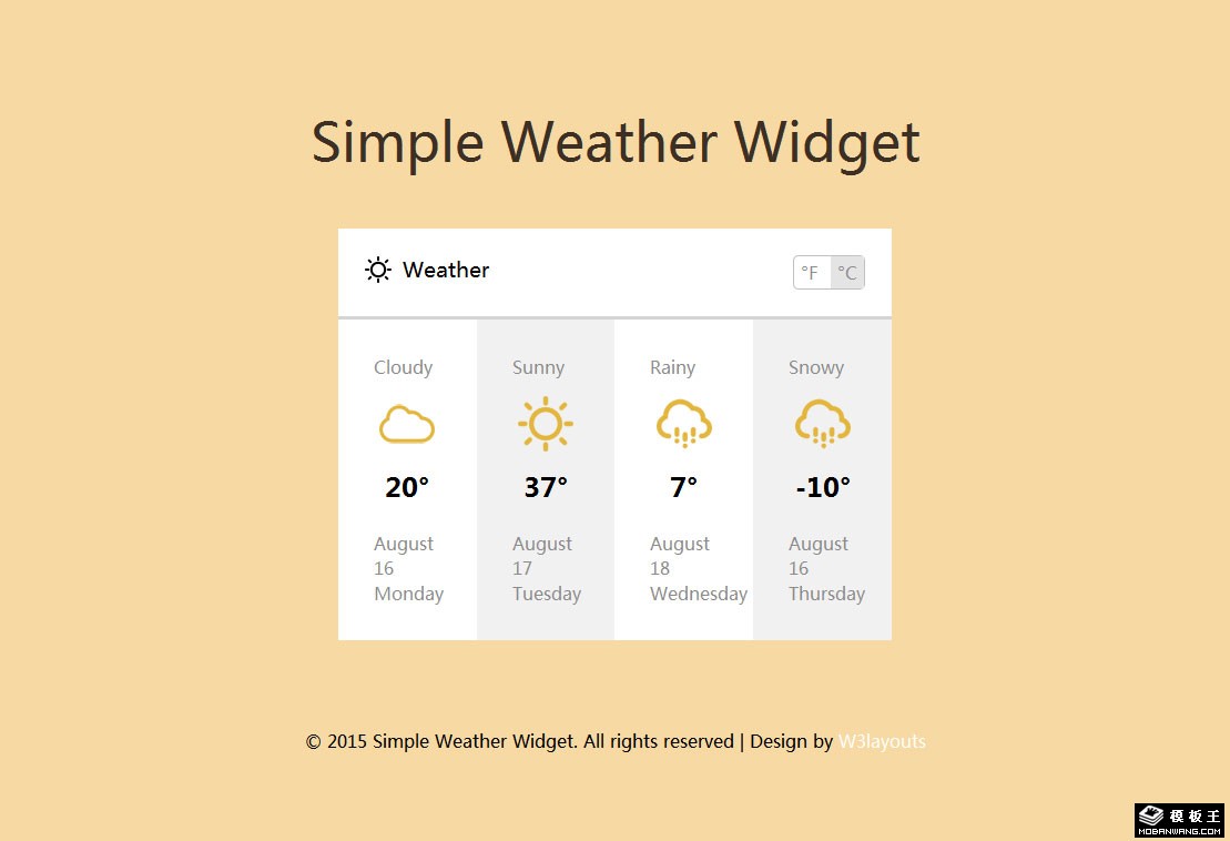 四天天气预报组件网页模板。