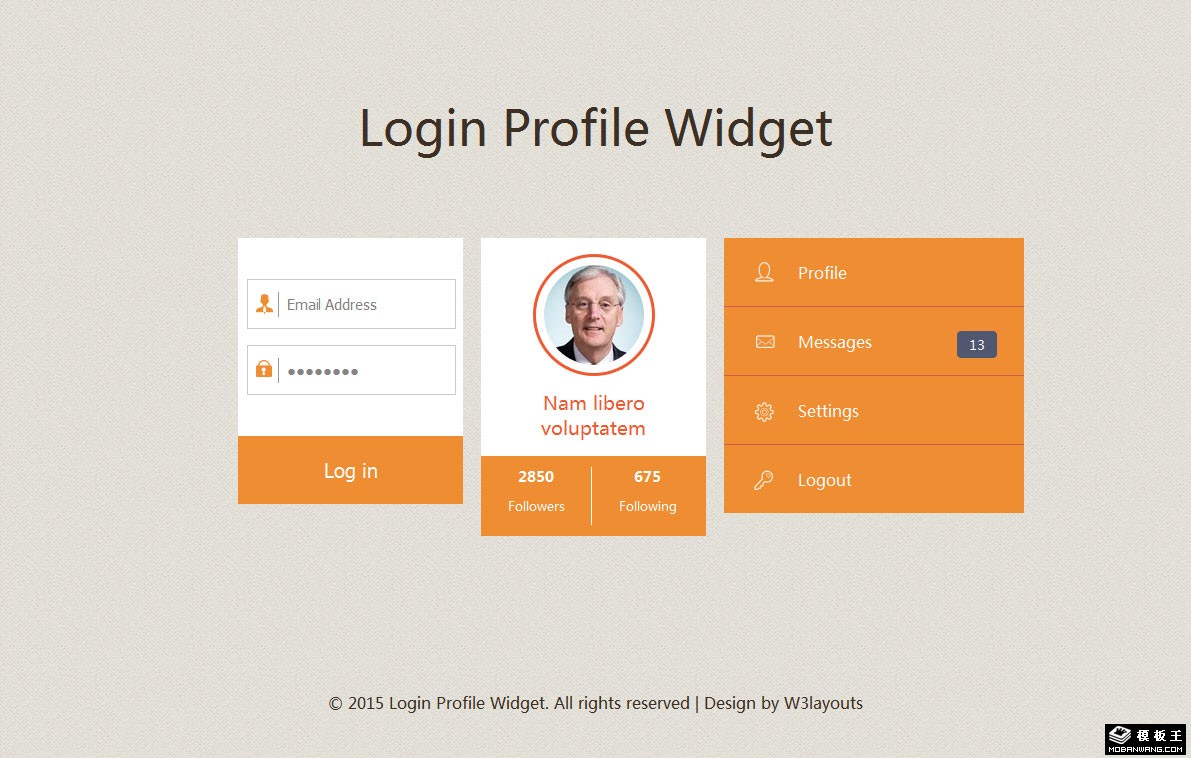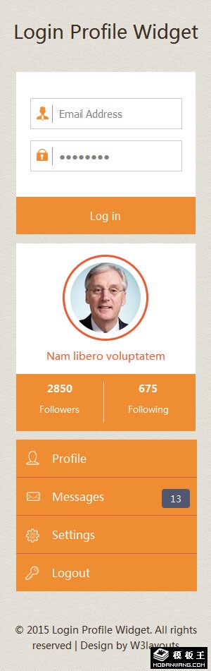 登录用户导航组件响应式网页模板。