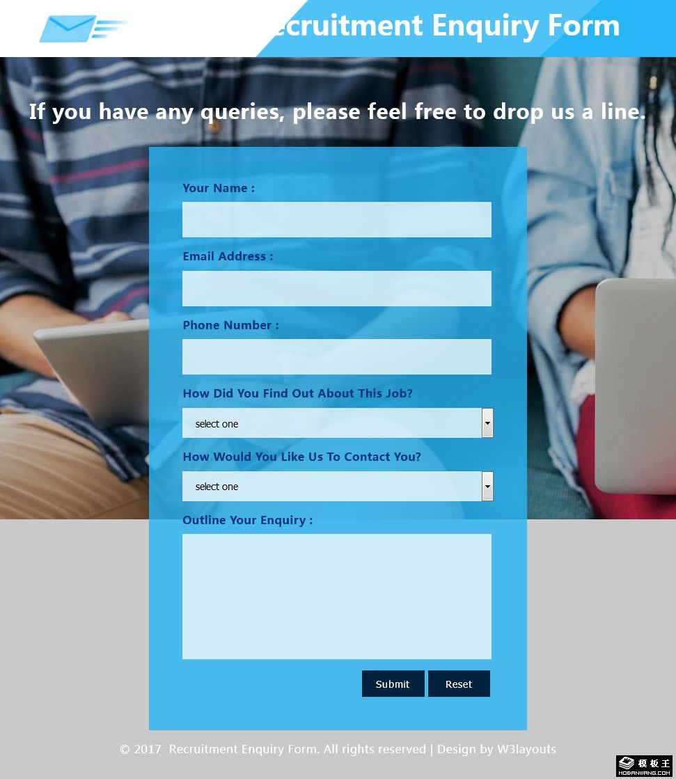 招聘调查表响应式网页模板。