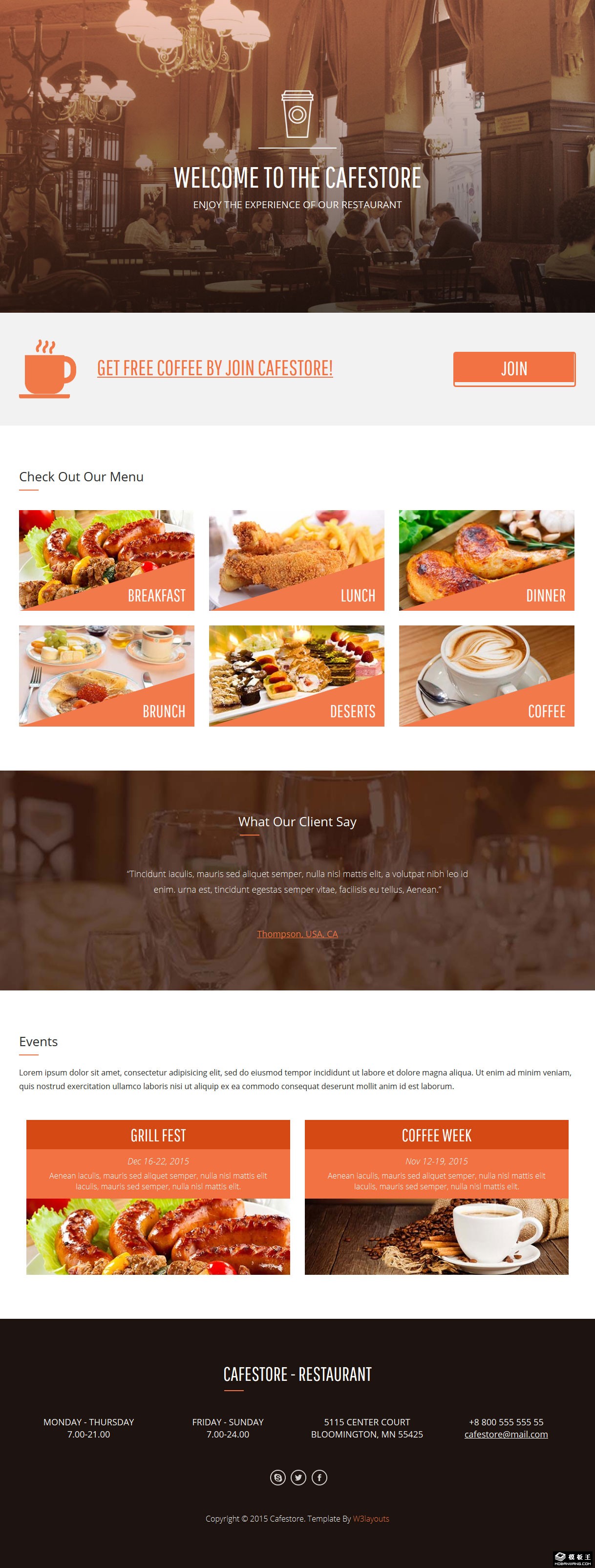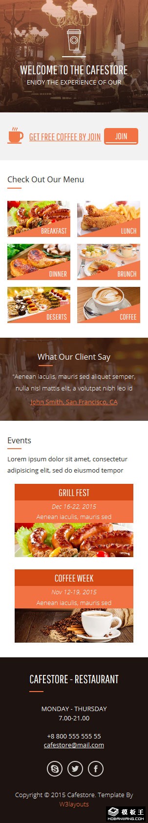咖啡餐厅响应式网页模板。