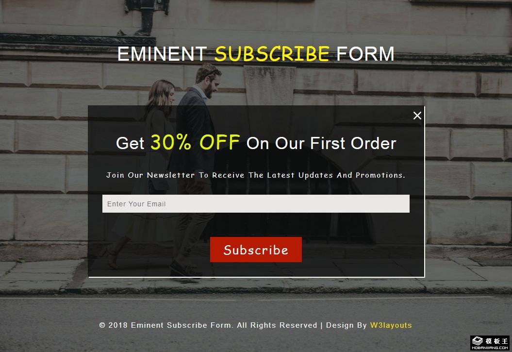 促销信息订阅框响应式网页模板。