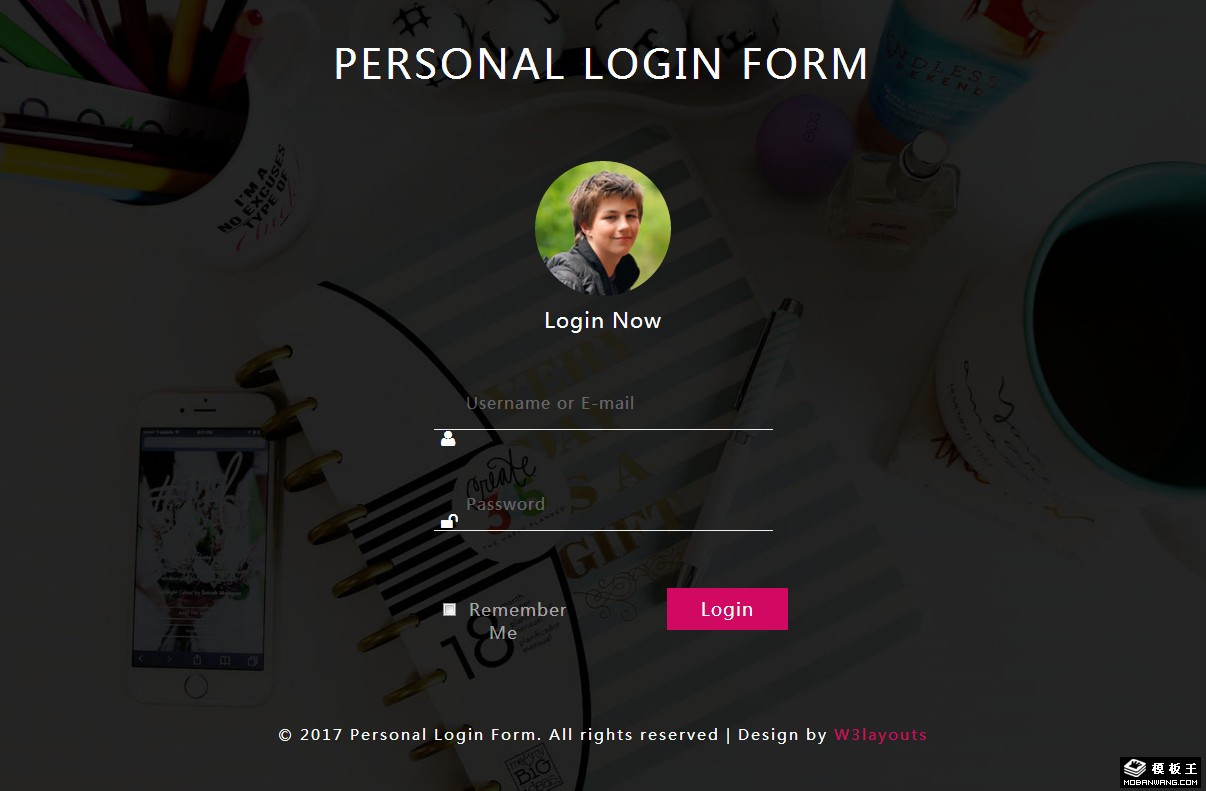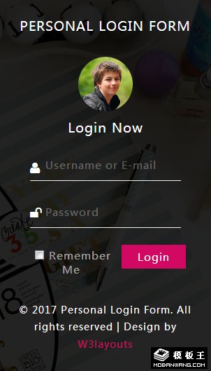 黑色个人登录表单网页模板。