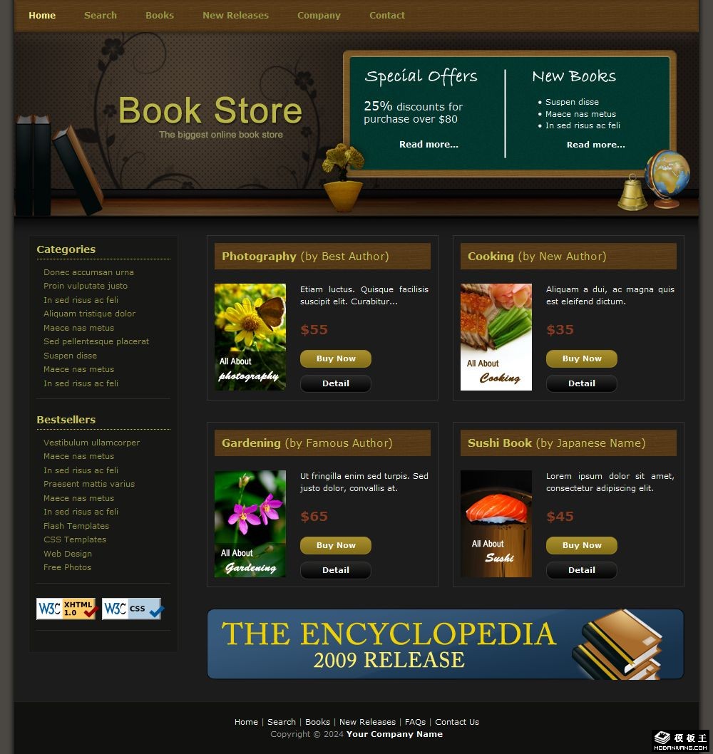 图书展示销售网页模板。
