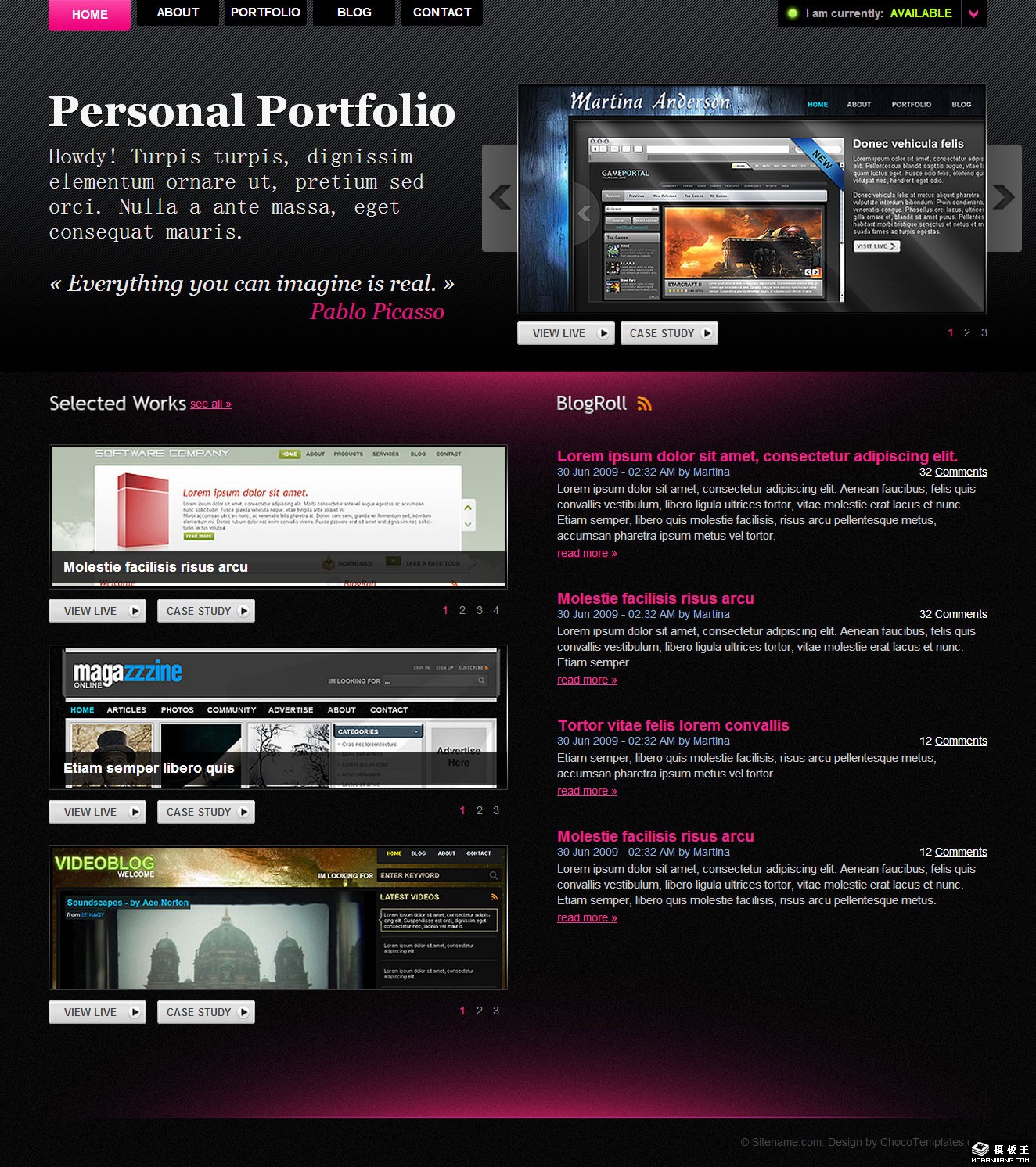 黑色创意项目信息网页模板。