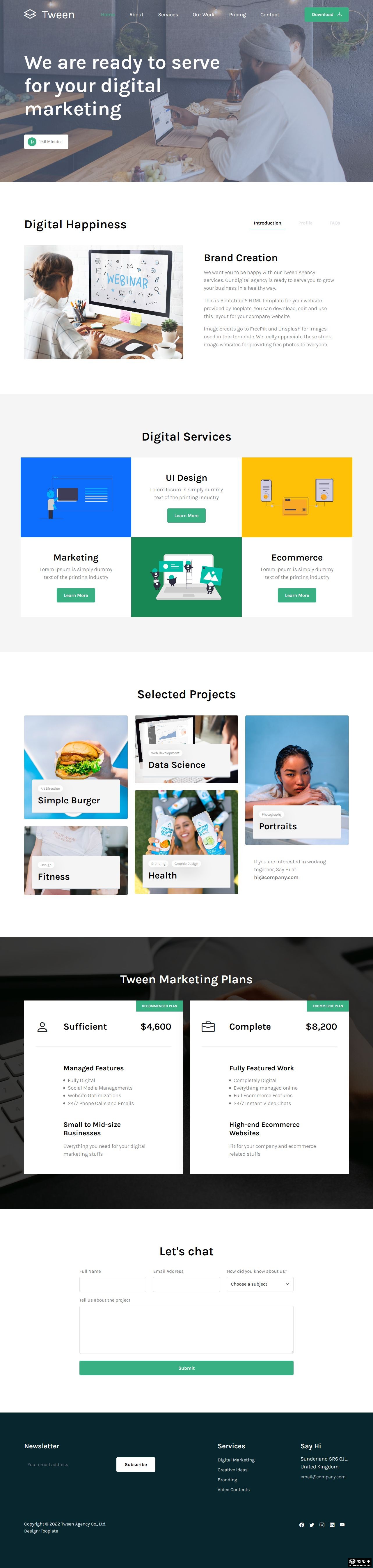 数字营销服务企业响应式网页模板。