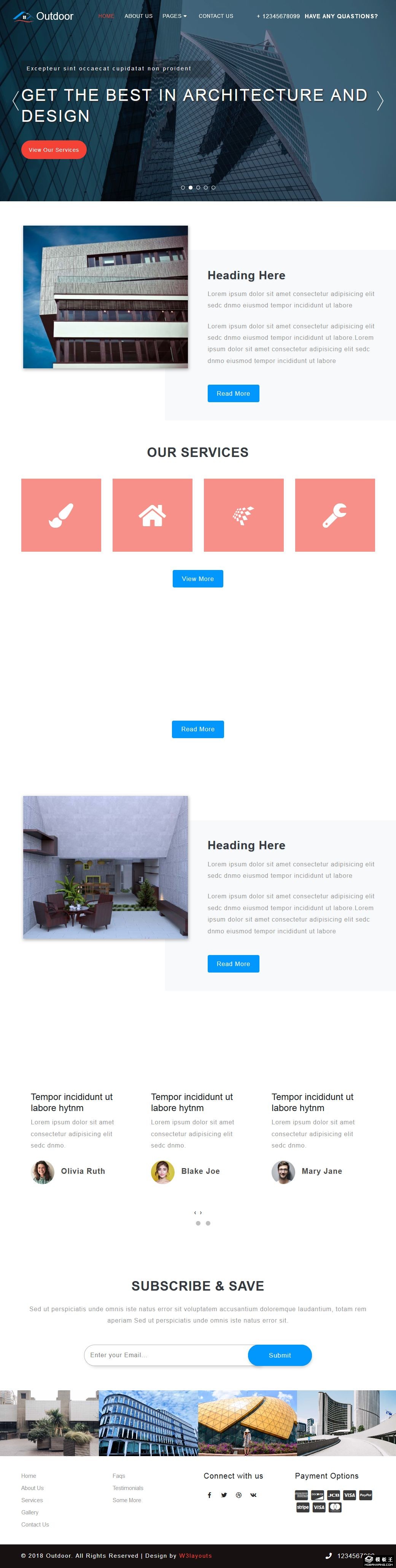 现代创意建筑外观响应式网站模板。