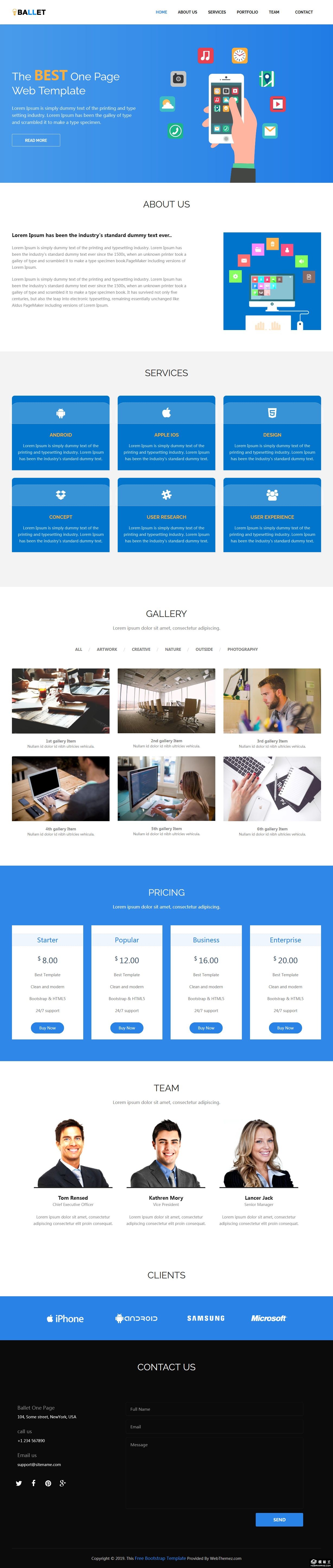 蓝色APP商务服务响应式网页模板。