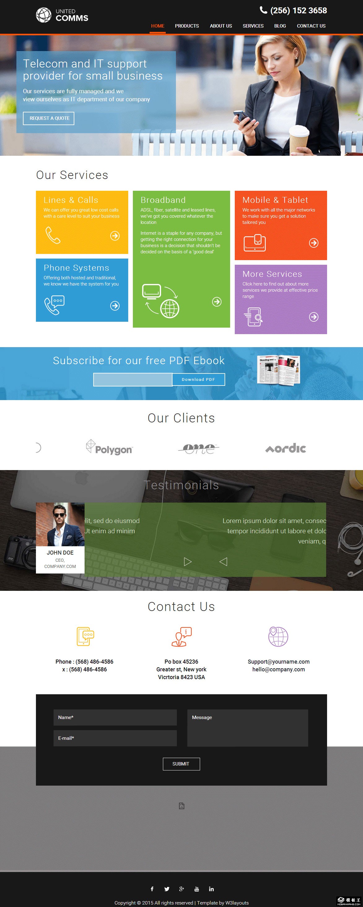 通讯服务产品响应式网页模板。