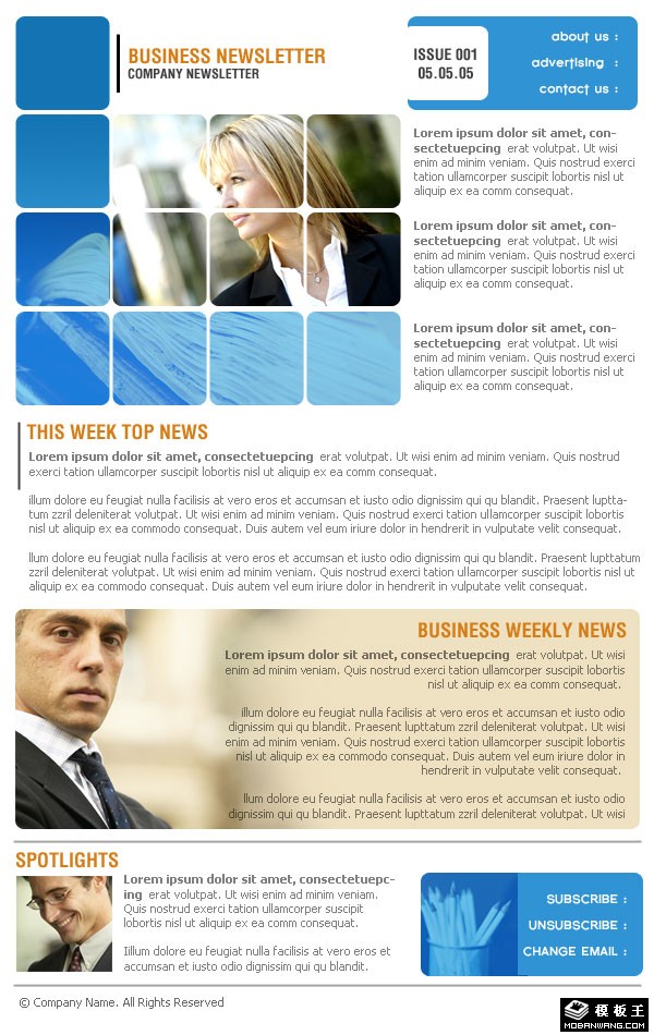 蓝色商务公司EDM网页模板。