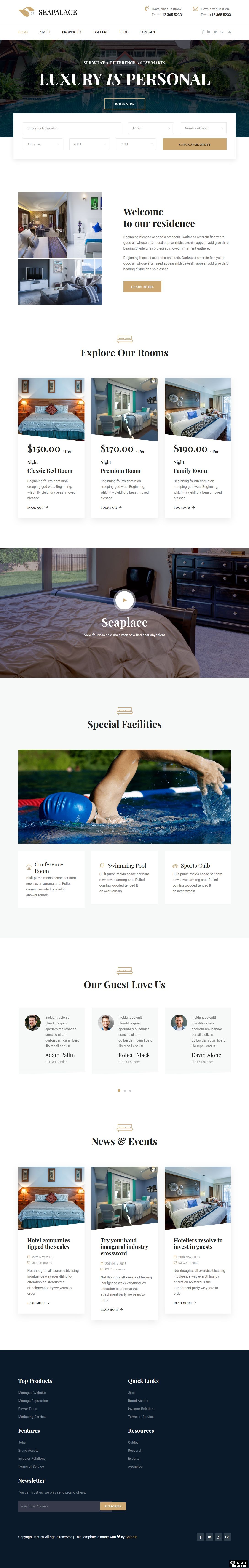 海上皇宫度假酒店响应式网站模板。