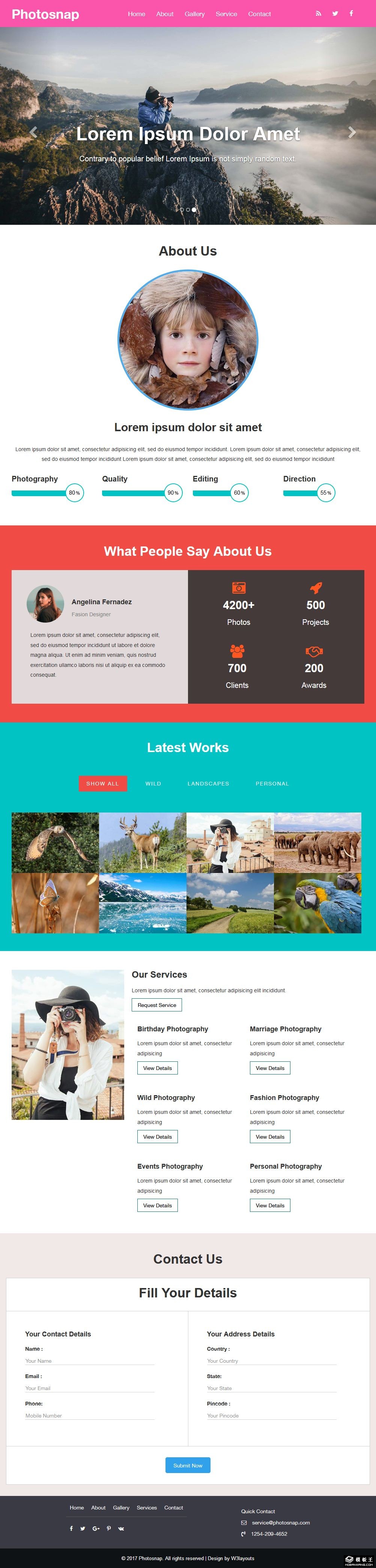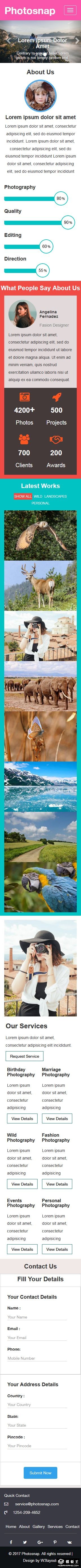 照片捕捉摄影服务响应式网页模板。