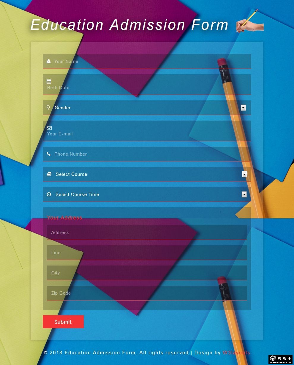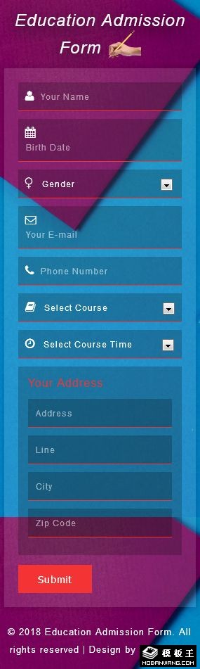 入学信息登记表单响应式网页模板。