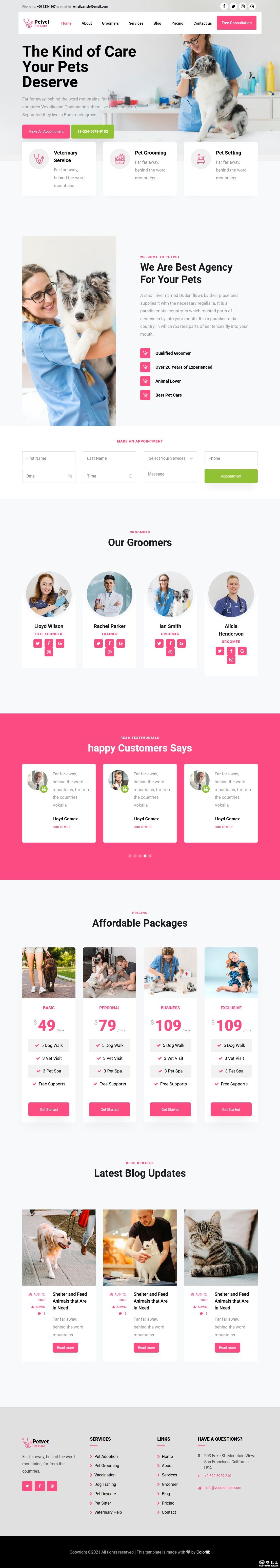 宠物兽医服务响应式网页模板。