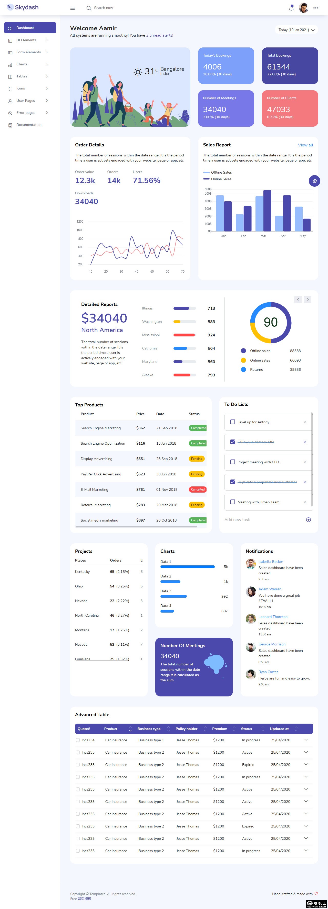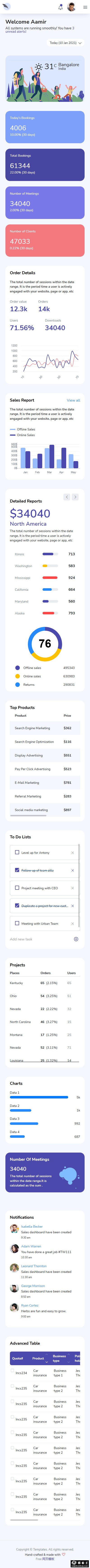 销售管理数据分析后台网站模板。