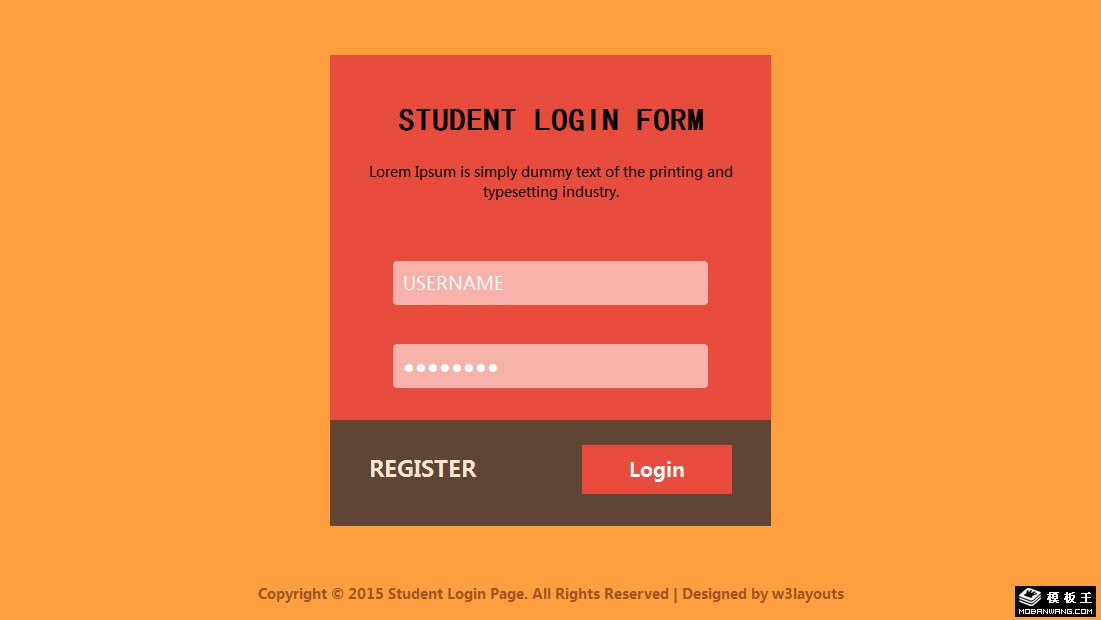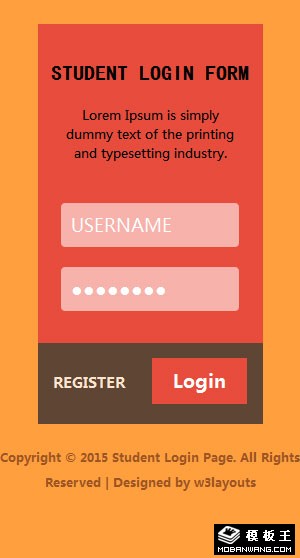 橙色学生登录表单响应式网页模板。
