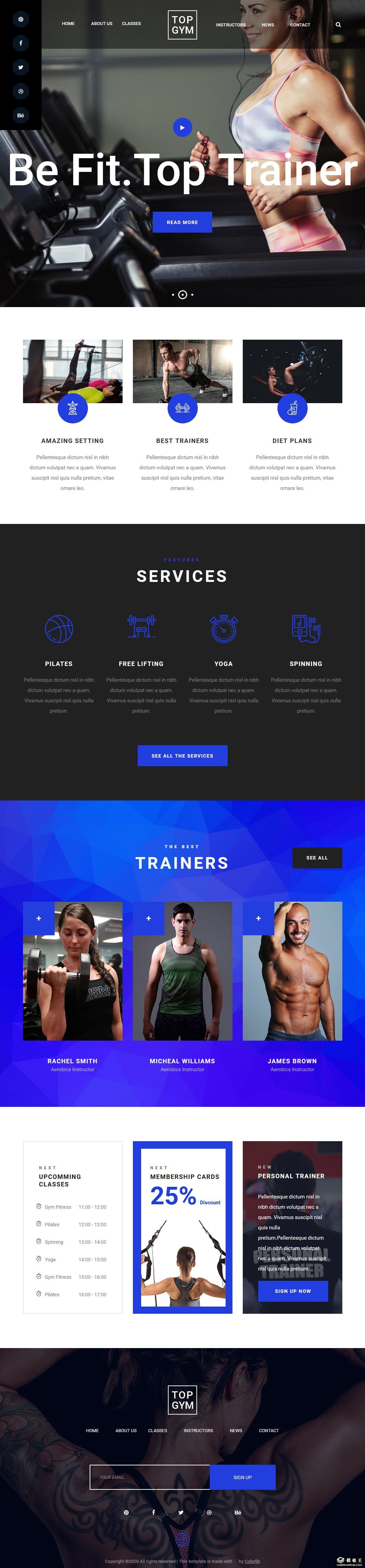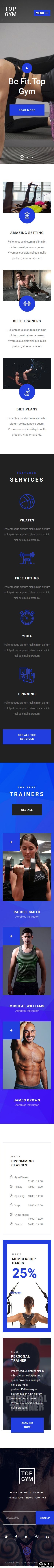 健身服务团队展示响应式网页模板。