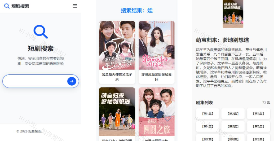 短剧搜索是一个根据 AI 生成的一个简单的在线短剧搜索和播放网站,由四个核心文件组成:index.html、search.php、list.php 和 play.php。它注重隐私保护,仅依赖浏览器历史记录,不保存任何服务器端或第三方的搜索记录。