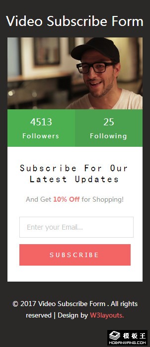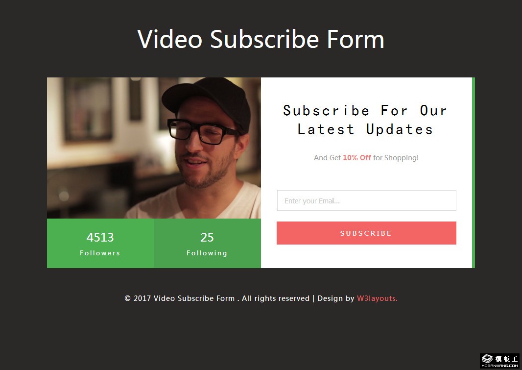 视频订阅框响应式网页模板。