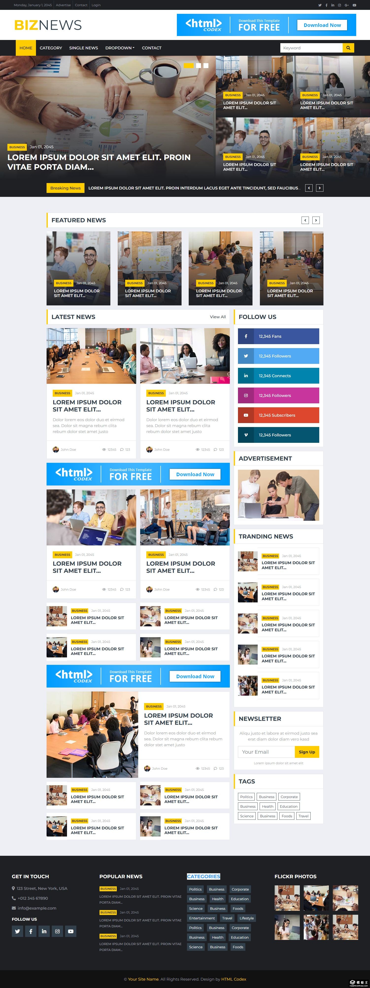 行业商务新闻网站模板。