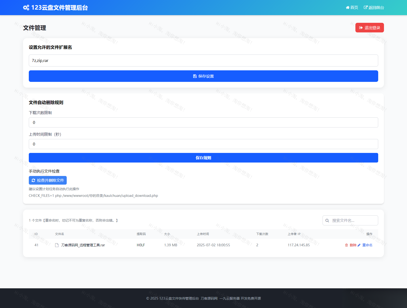 最新临时文件快传系统源码 轻量化 带后台 首发