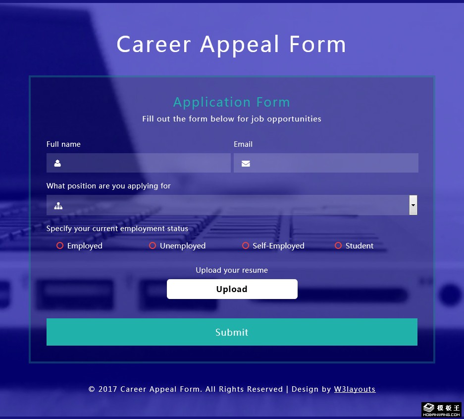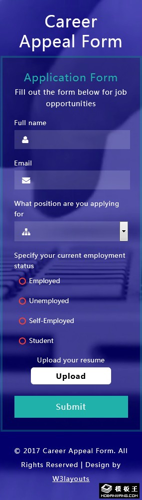 紫色职业登记提交响应式网页模板。