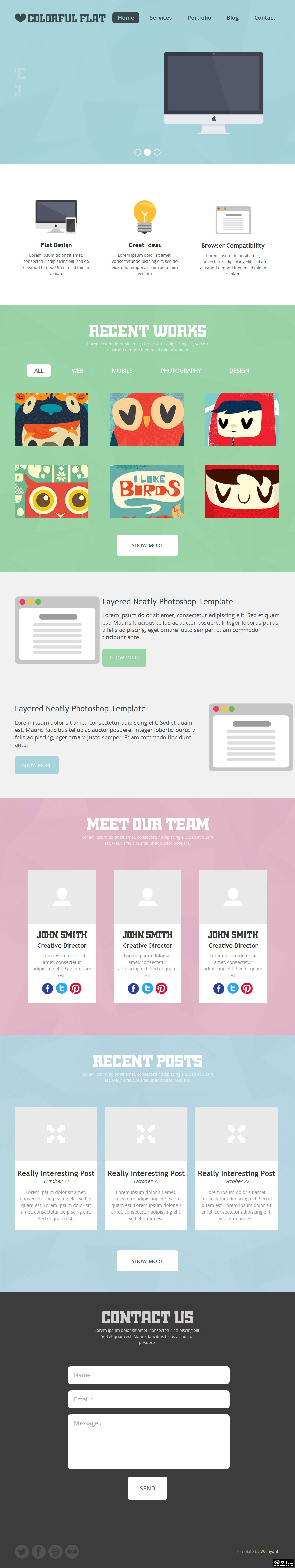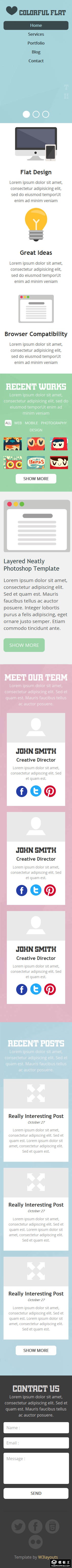 彩色扁平信息动态网页模板。