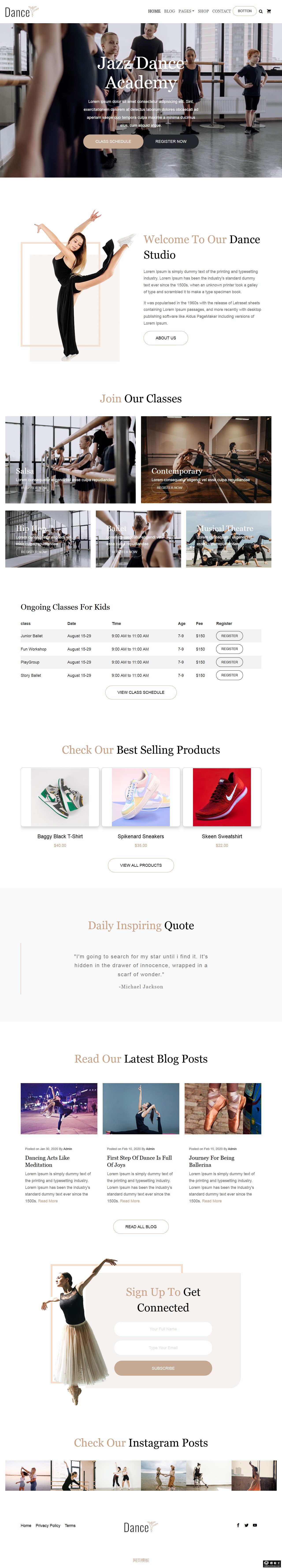 舞蹈课程训练展示网站模板。