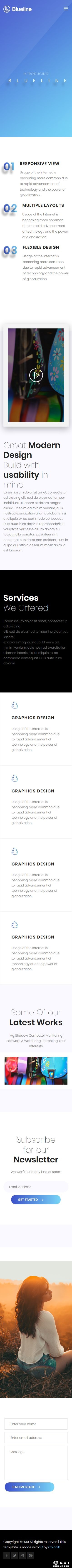 蓝色在线信息展示响应式网页模板。