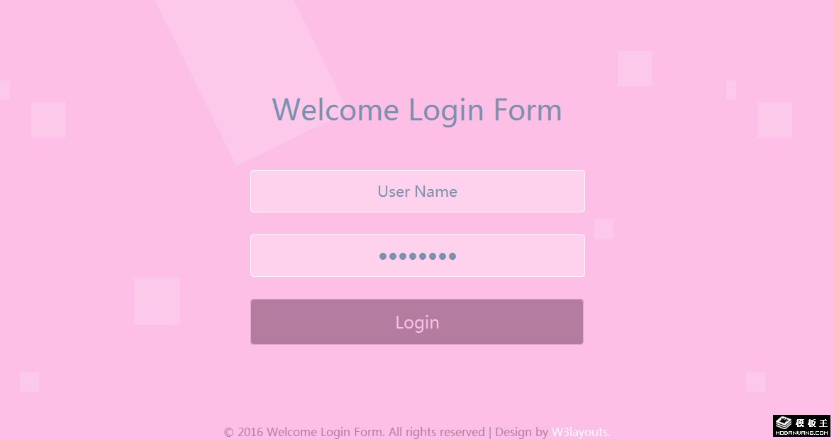 粉红用户登录表单网页模板。