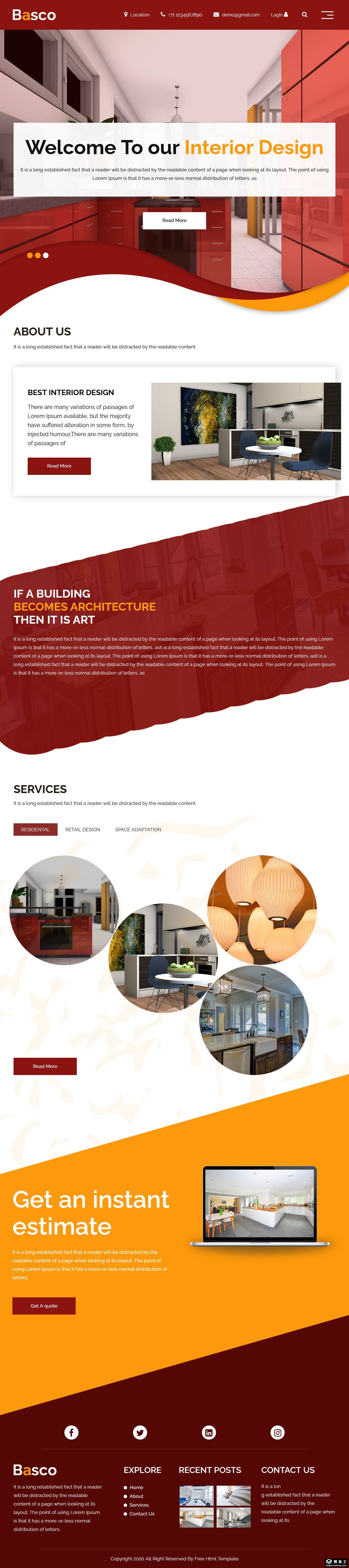 暗红艺术家装响应式网页模板。