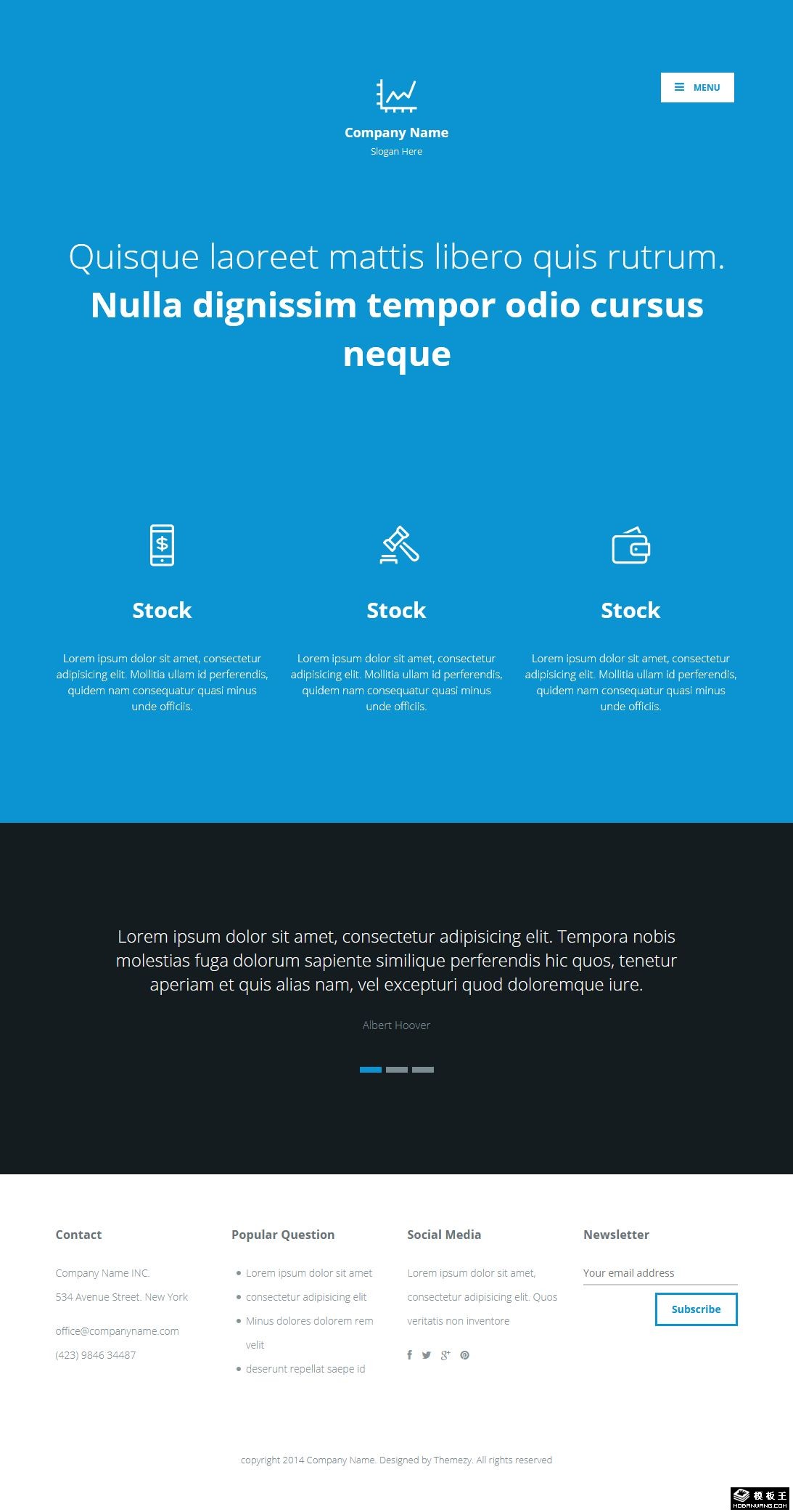 蓝色企业财务顾问响应式网站模板。
