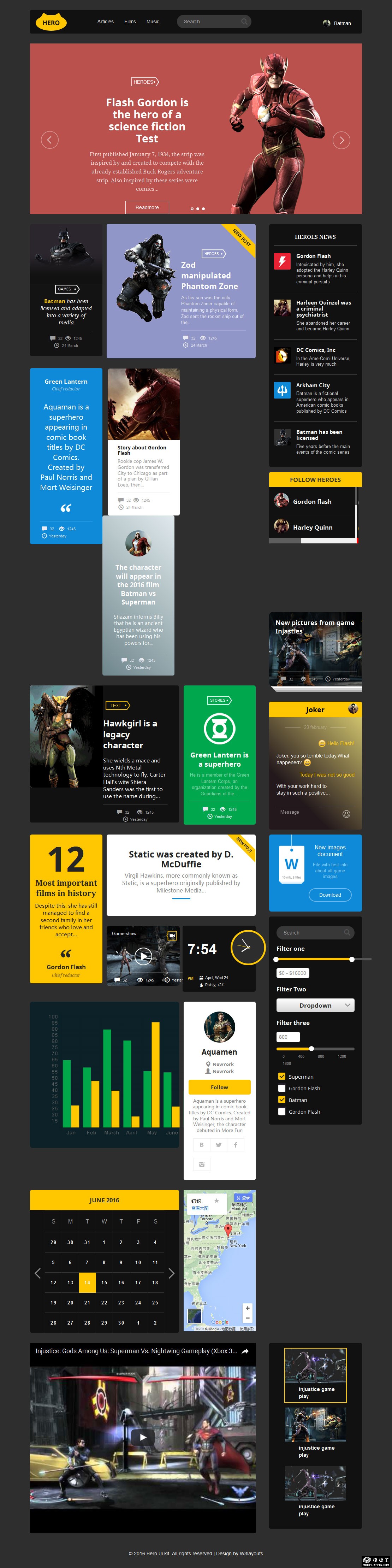 超级英雄功能组件响应式网页模板。