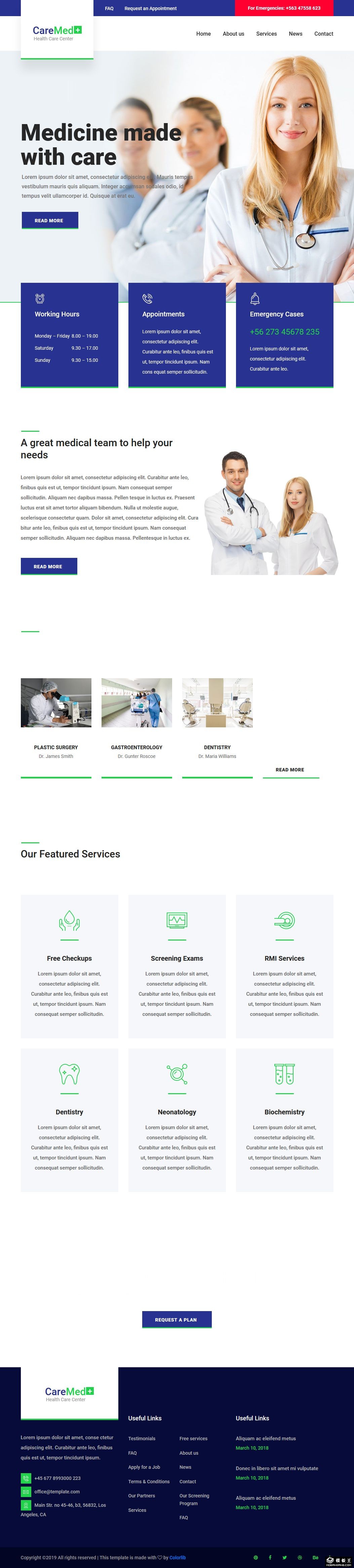 健康护理中心响应式网站模板。