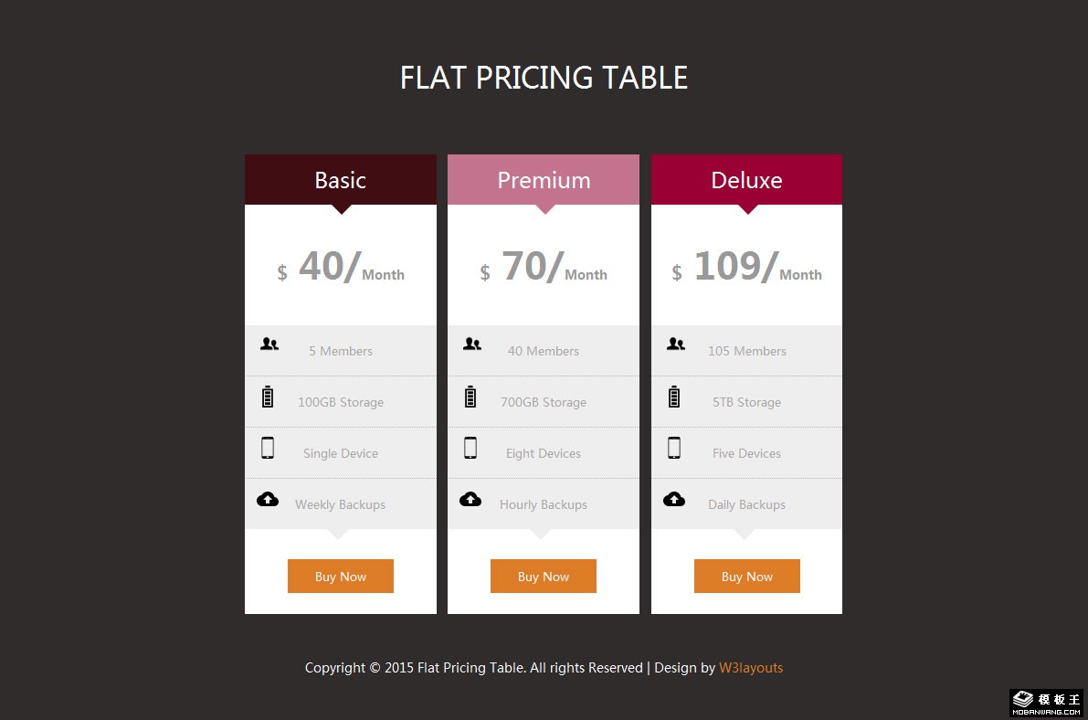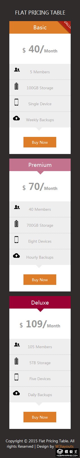 产品参数价格购买列表响应式网页模板。