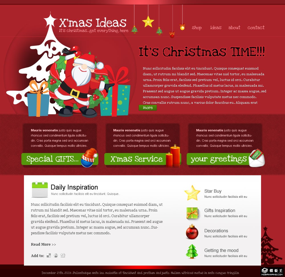 圣诞节的问候网页模板。