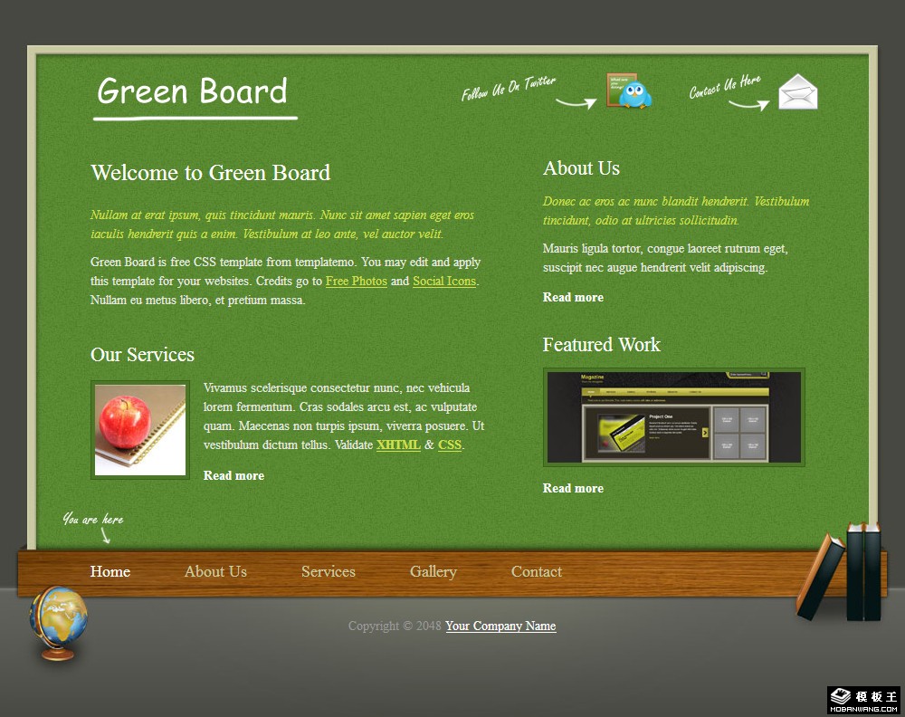 绿色公告板信息展示网页模板。