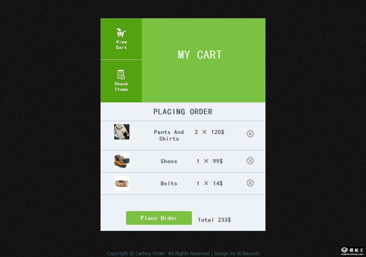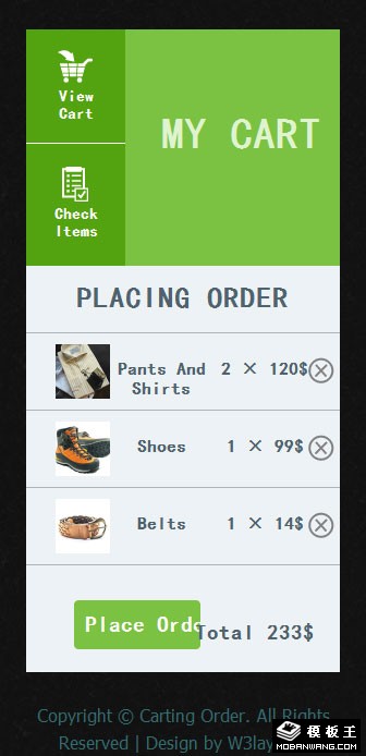 绿色购物车组件响应式网页模板。