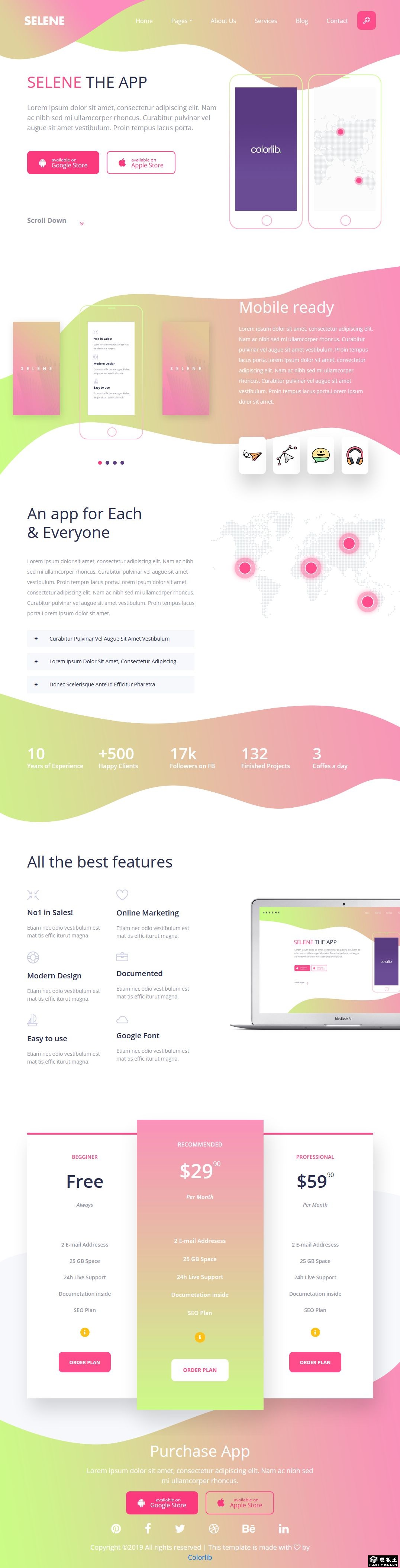 粉绿APP动态展示响应式网站模板。