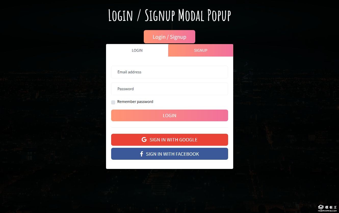 按钮点击登录注册框响应式网页模板。