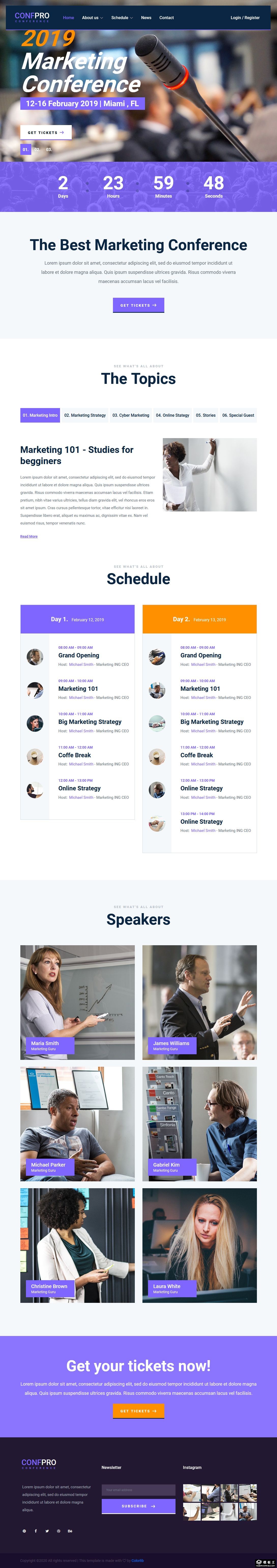 营销会议动态响应式网站模板。