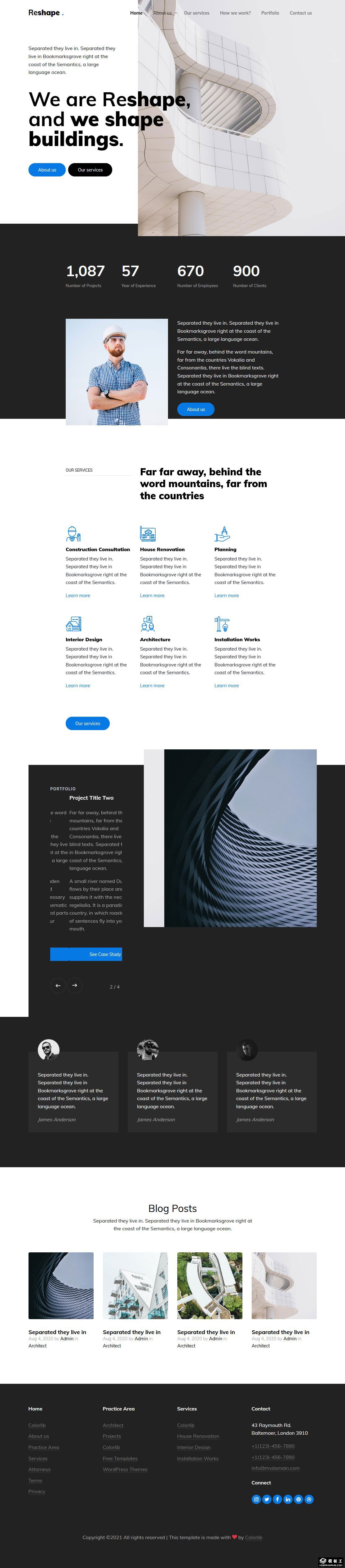 重塑空间建筑设计响应式网页模板。
