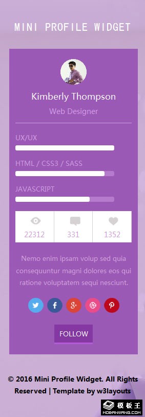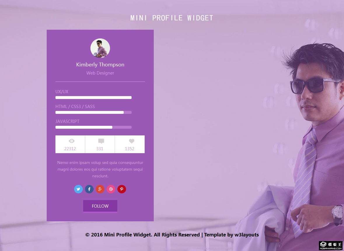 紫色个人名片展示响应式网页模板。