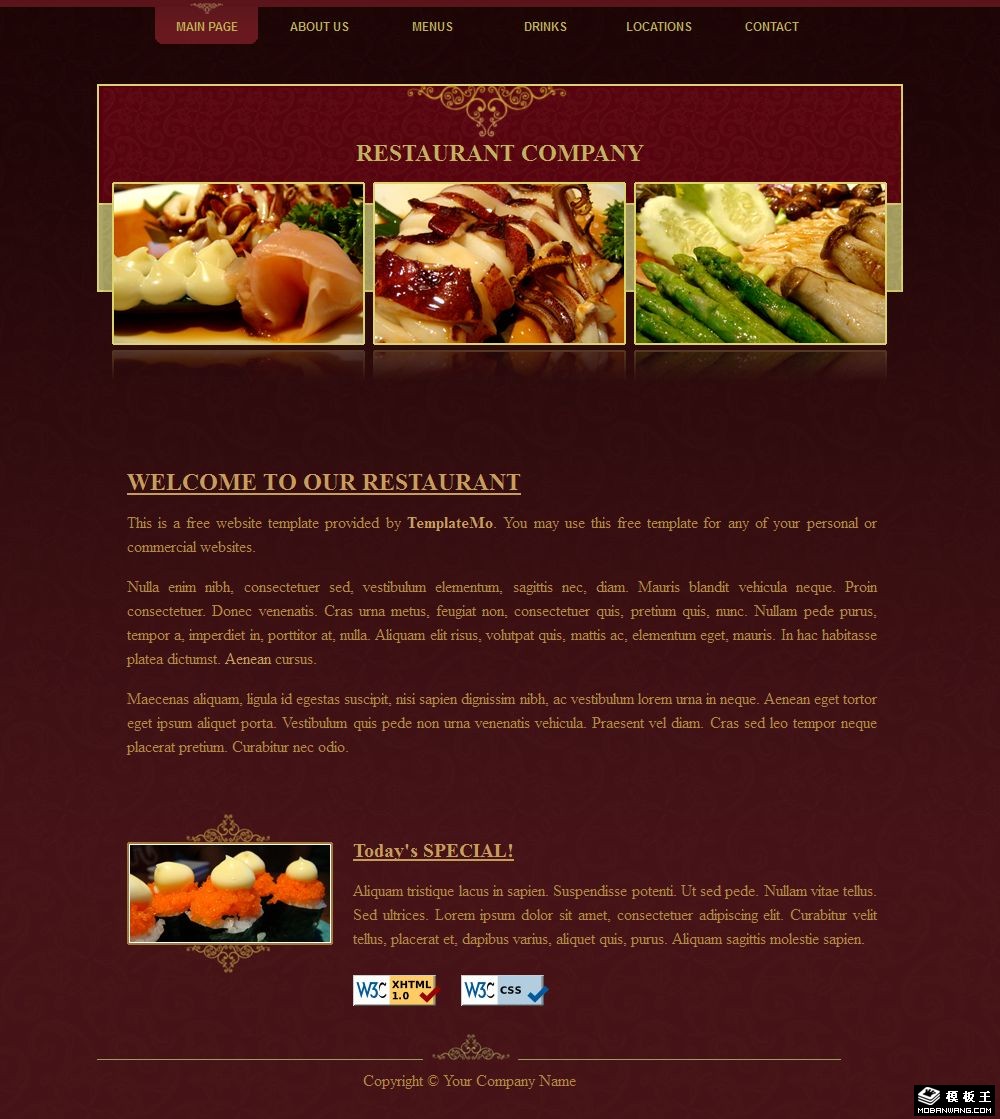 暗红美食餐厅介绍网页模板。