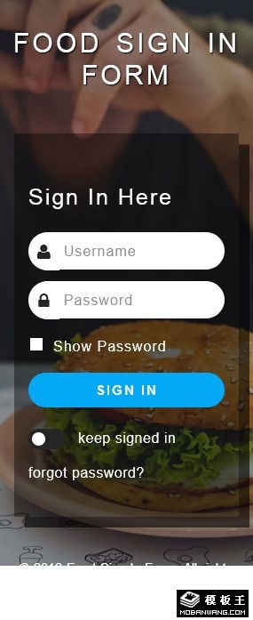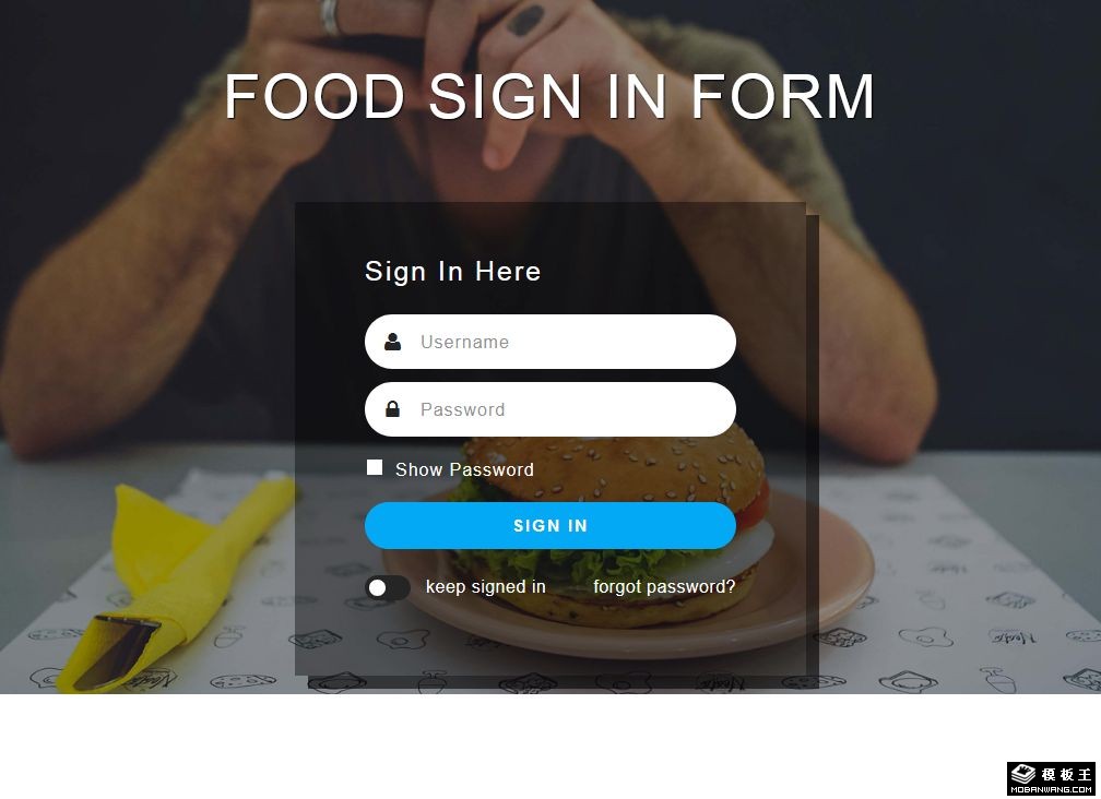 快餐登记表单网页模板。