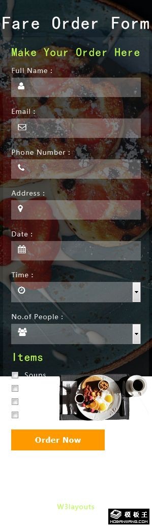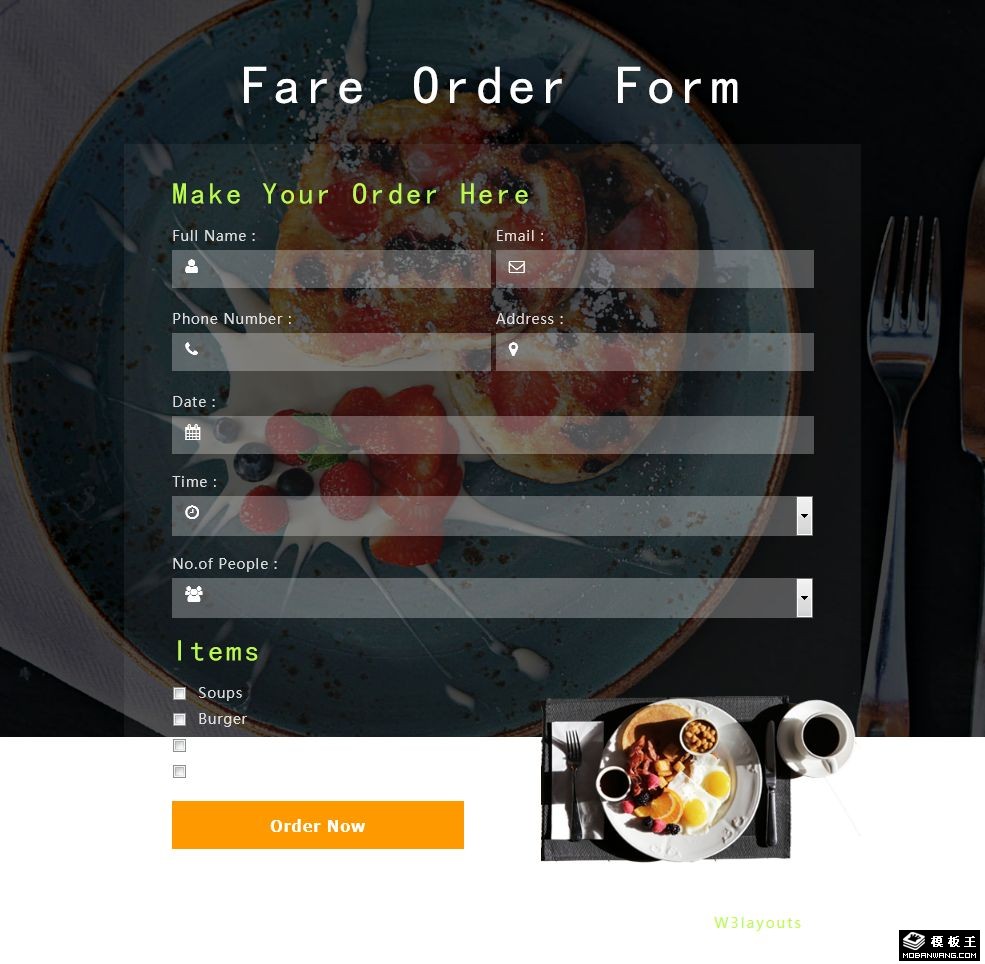餐厅预定表单响应式网页模板。