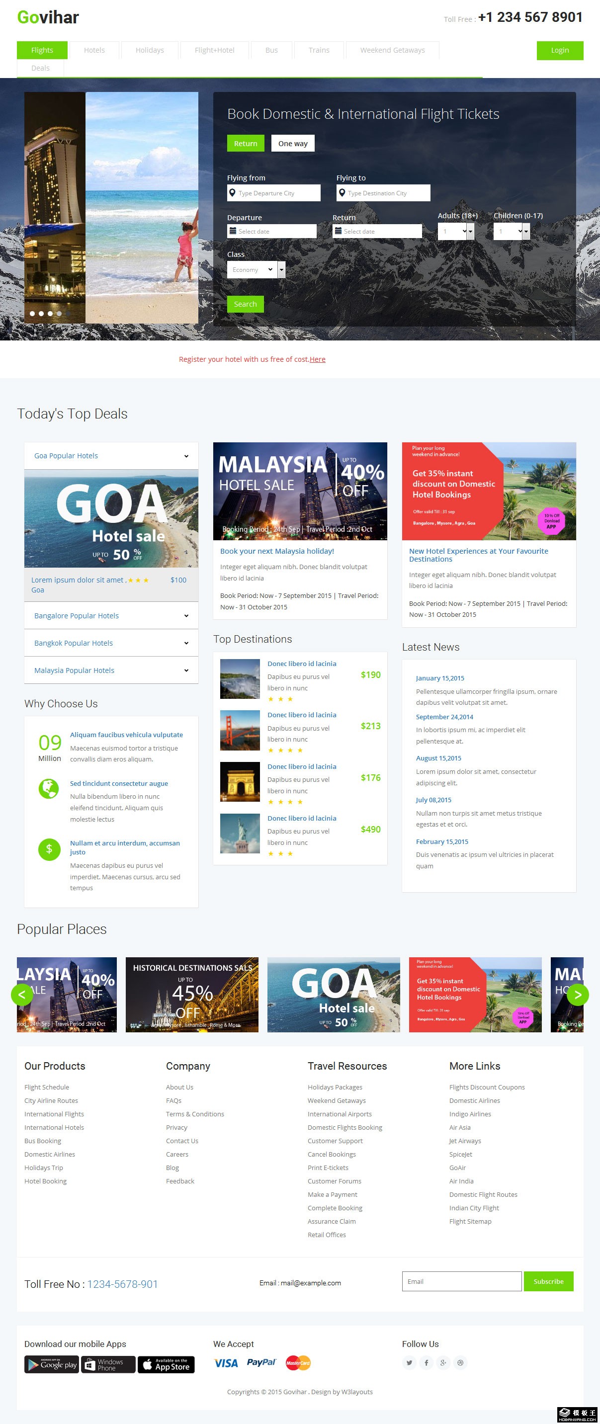 旅行信息查询指南响应式网页模板。