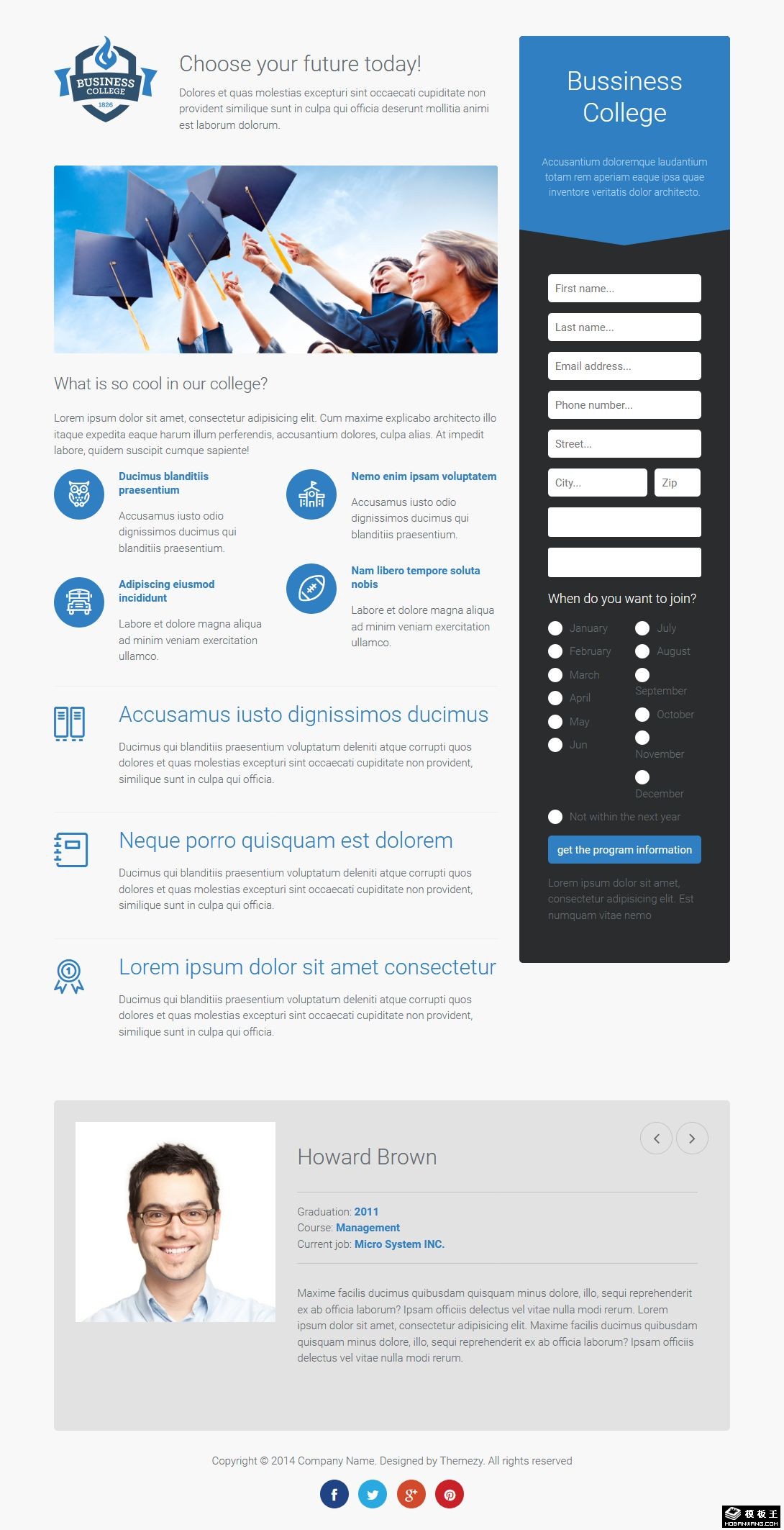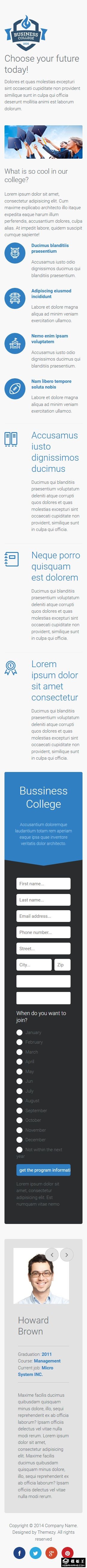 商务学院展示响应式网页模板。