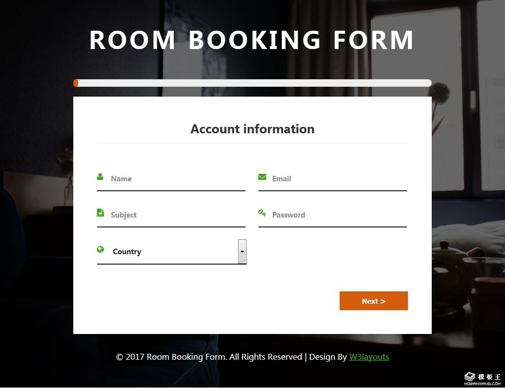 酒店预订表单响应式网页模板。
