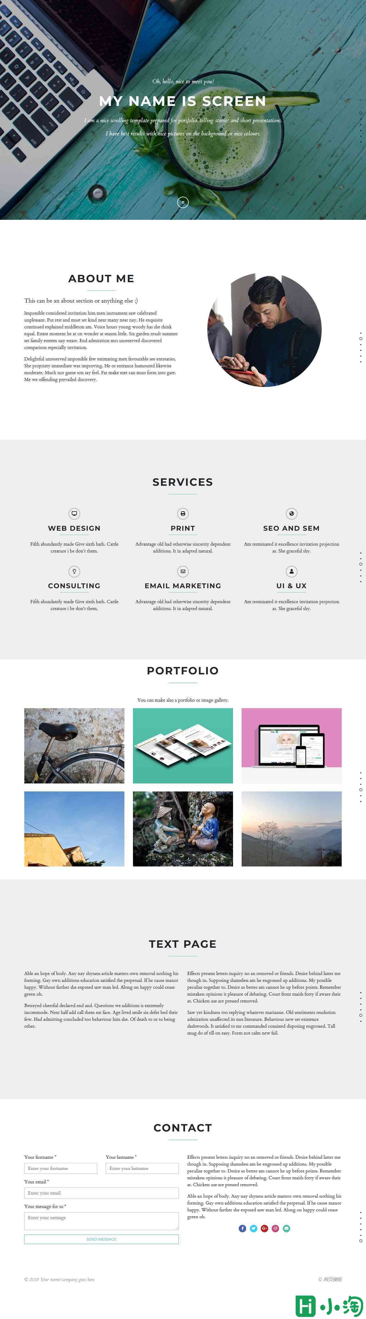 该模板非常适合作品图库、个人网站、摄影网站或他商业服务展示网站,且非常易于设置、定制自己的图库,响应式的布局及简洁的设计在任何设备上都非常完美适应。该模板具有独特的创意性,全屏上下翻页展示。